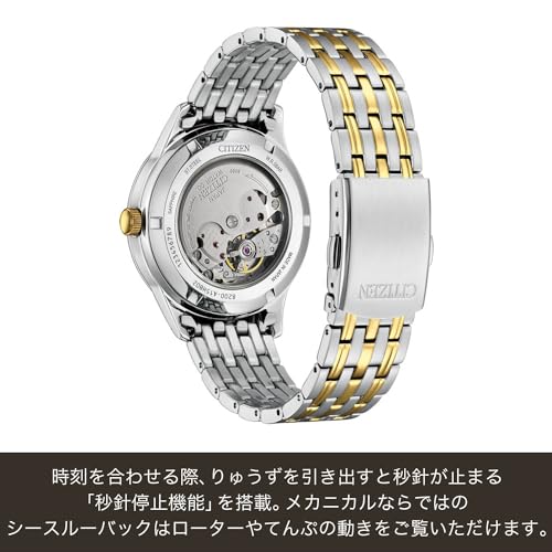 - Basic Performance and Design: Features a caliber with a "seconds hand stop function" that halts the second hand when setting the time. The mechanical charm of the watch is showcased with a see-through case back allowing enjoyment of the rotating weight and mechanical movement.