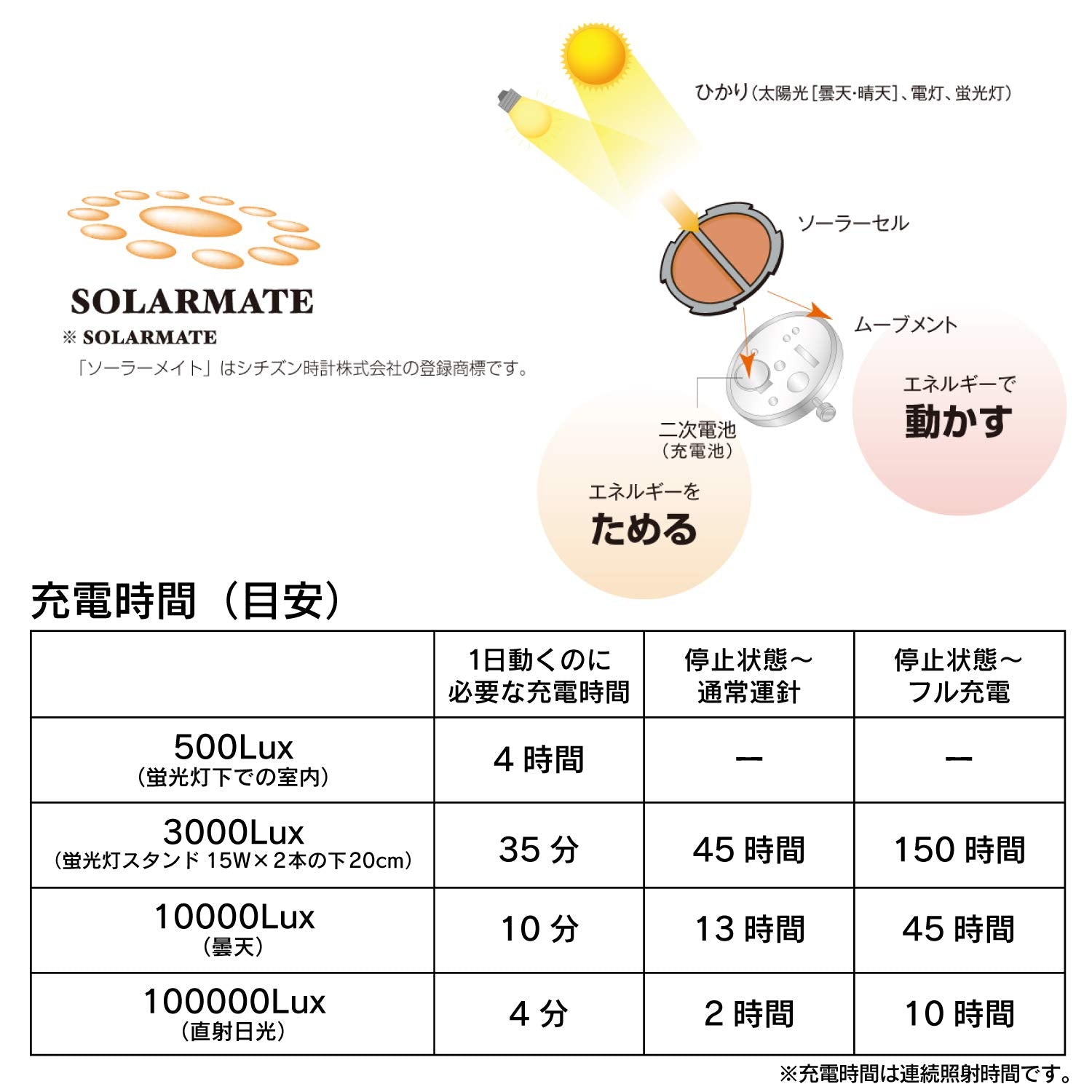 - Functions: Radio wave reception (Japan standard radio waves: Fukushima station/Kyushu station), luminescent dial markers and hands, power-saving function, overcharge prevention function, low battery warning function, reference position confirmation function