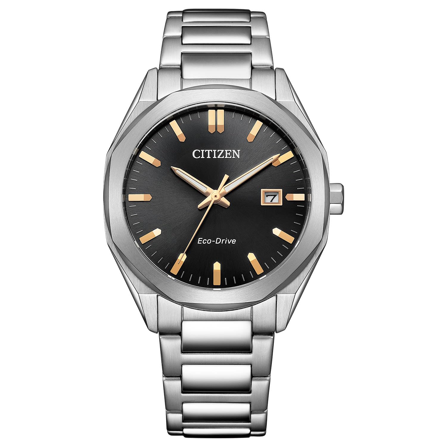Citizen Solar-Powered Eco-Drive Watch Waterproof Octagon Black Simple BM7620-83E Men's Silver