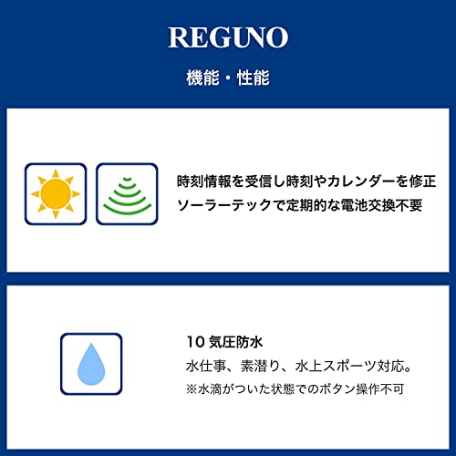 - REGUNO Standard Watch: A solar-powered radio-controlled watch that requires no regular battery changes or time adjustments. A standard model that combines design and functionality suitable for both business and casual settings.