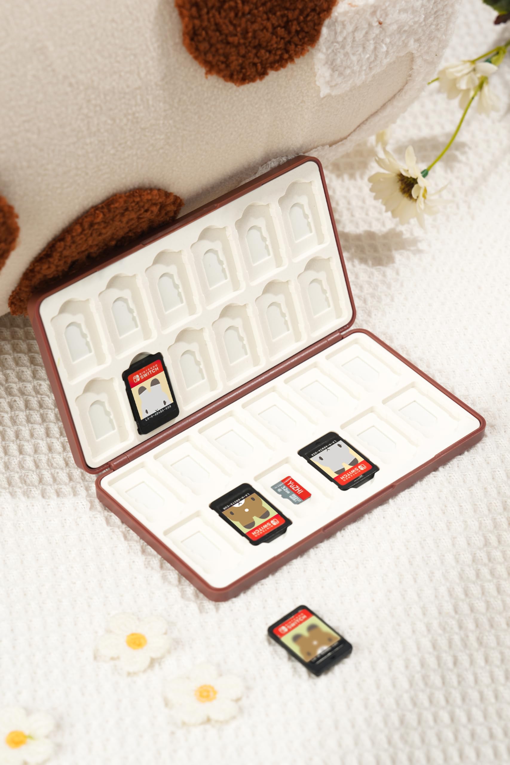 - Capacity: This game card holder can store up to 24 Nintendo Switch game cards and 24 microSD cards.
