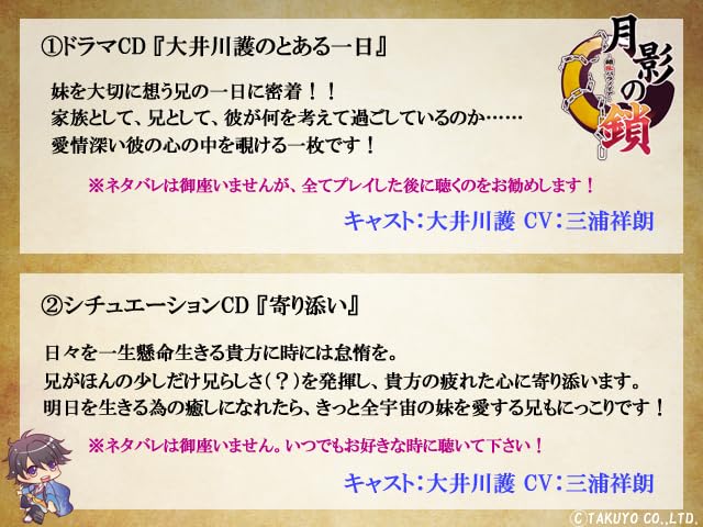 Character Voice Acting: Features a full voice cast with prominent actors such as Tarusuke Shingaki, Shintaro Asanuma, Yoshitsugu Matsuoka, Makoto Naruse, and Yoshirou Miura, offering sweet, touching, and captivating performances.