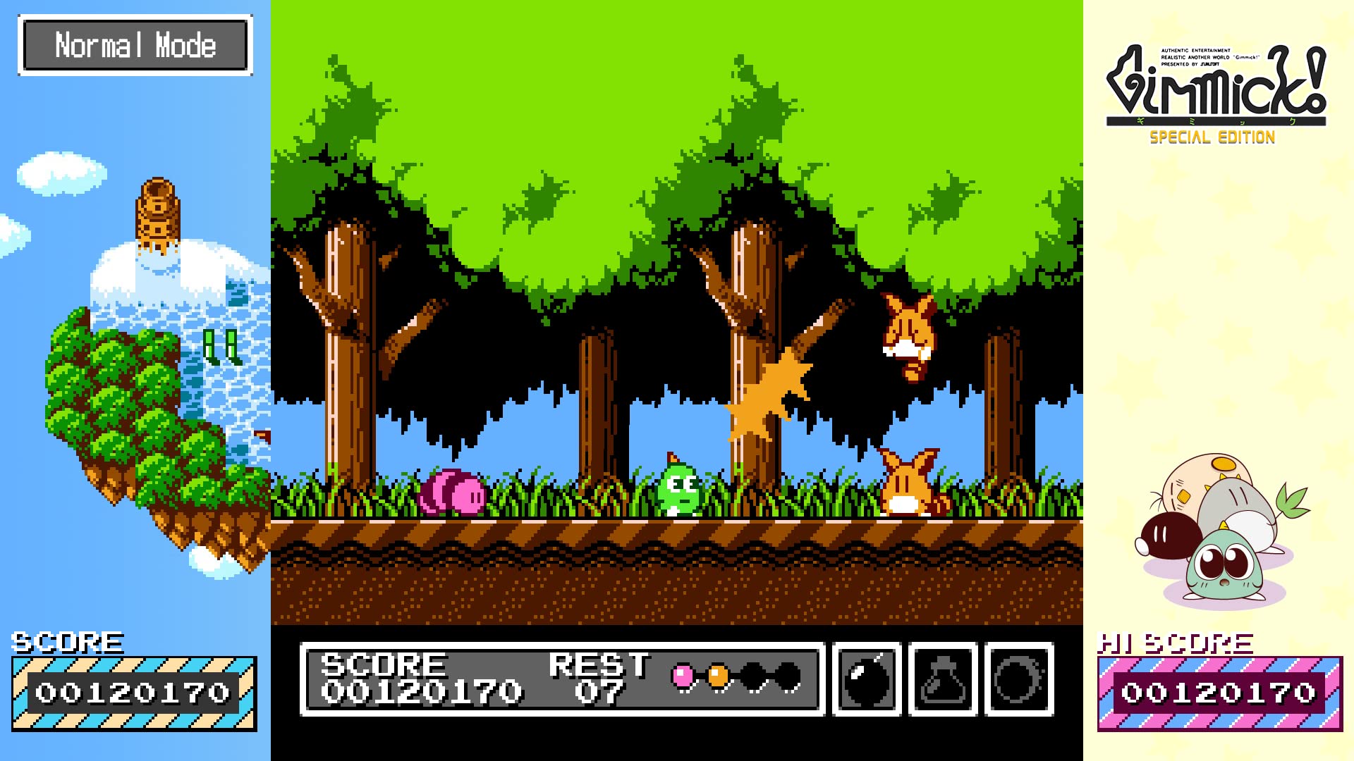 With its cute appearance and highly dynamic action, along with some of the most impressive and poppy music from the Famicom era, this game has become legendary! Challenge yourself with the new Gimmick! Special Edition.