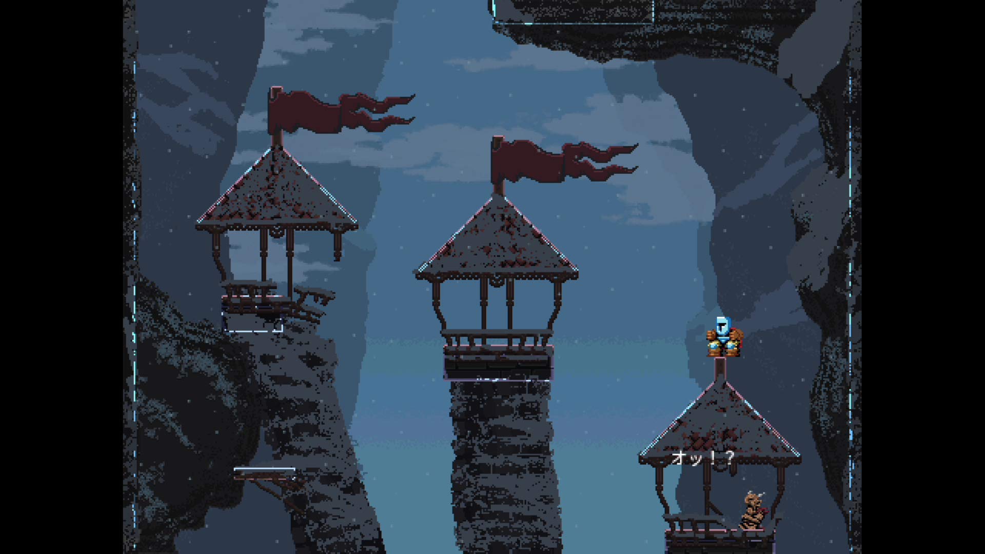 The game’s controls are simple, consisting only of jumping and moving sideways, but the jump distance changes depending on how long the jump button is pressed. Players must precisely adjust the length of time they press the button to match the distance between platforms and use the direction button to determine the direction of the jump. Once the jump is made, the direction cannot be changed.