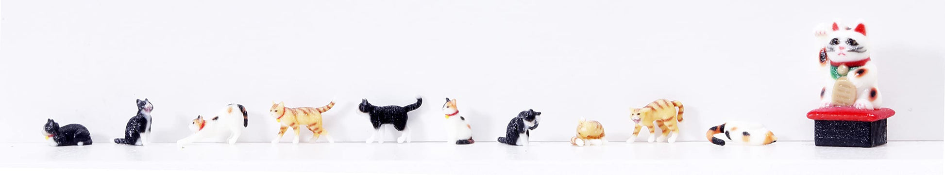The set includes 10 Japanese cats in 10 poses, including a brown tiger, a tortoise, a tortoiseshell, and a black bush, and a beckoning cat with its right paw raised. The figure is made in the same lovely pose of sitting on a box, stretching out, washing face, and so on.