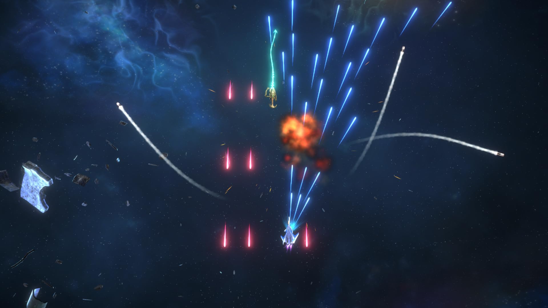 New-Feeling Scrolling Shooter: Experience diverse gameplay styles with Valkyries from historical pilots in three forms per scene. The game includes various shooting styles such as horizontal, vertical, and 360-degree shooting.