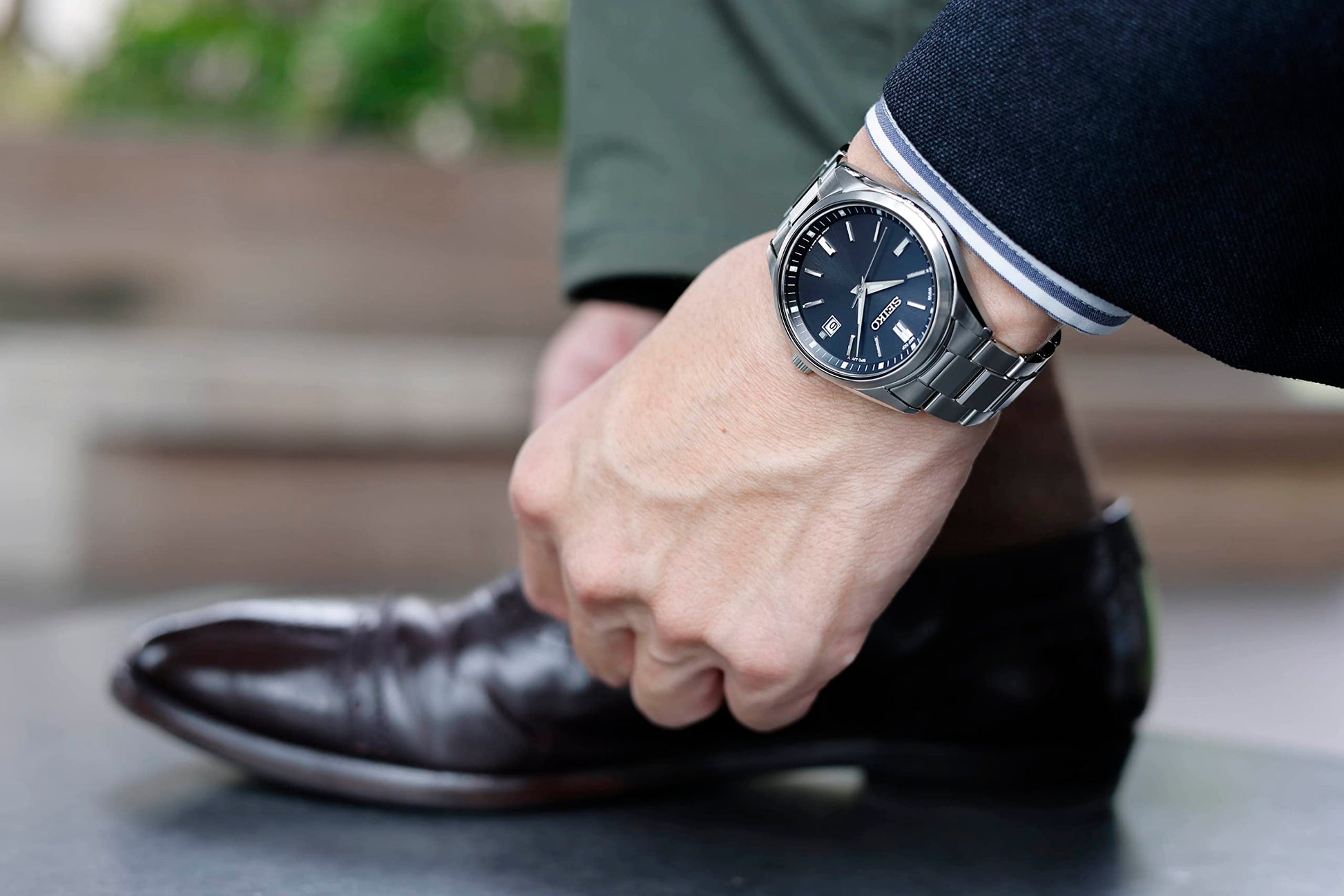 Details: Powered by the Caliber 7B72 with an electronic crown, this high-quality solar radio-controlled watch from SEIKO SELECTION offers enhanced functionality. The case features step lugs that emphasize light and shadow for a sharp look. The indexes are made from separate metal parts, improving texture, while luminous hands with LumiBrite enhance visibility, including at night. The sapphire glass is coated with Super Clear Coating, reducing reflections and improving dial visibility, along with a surface anti-fouling layer to resist dirt. With its electronic crown, time zone adjustments are simplified, and the watch receives standard radio waves from 5 areas and 6 stations (Japan, China, USA, Germany, UK). It also meets JIS Type 1 magnetic resistance standards, improving usability.