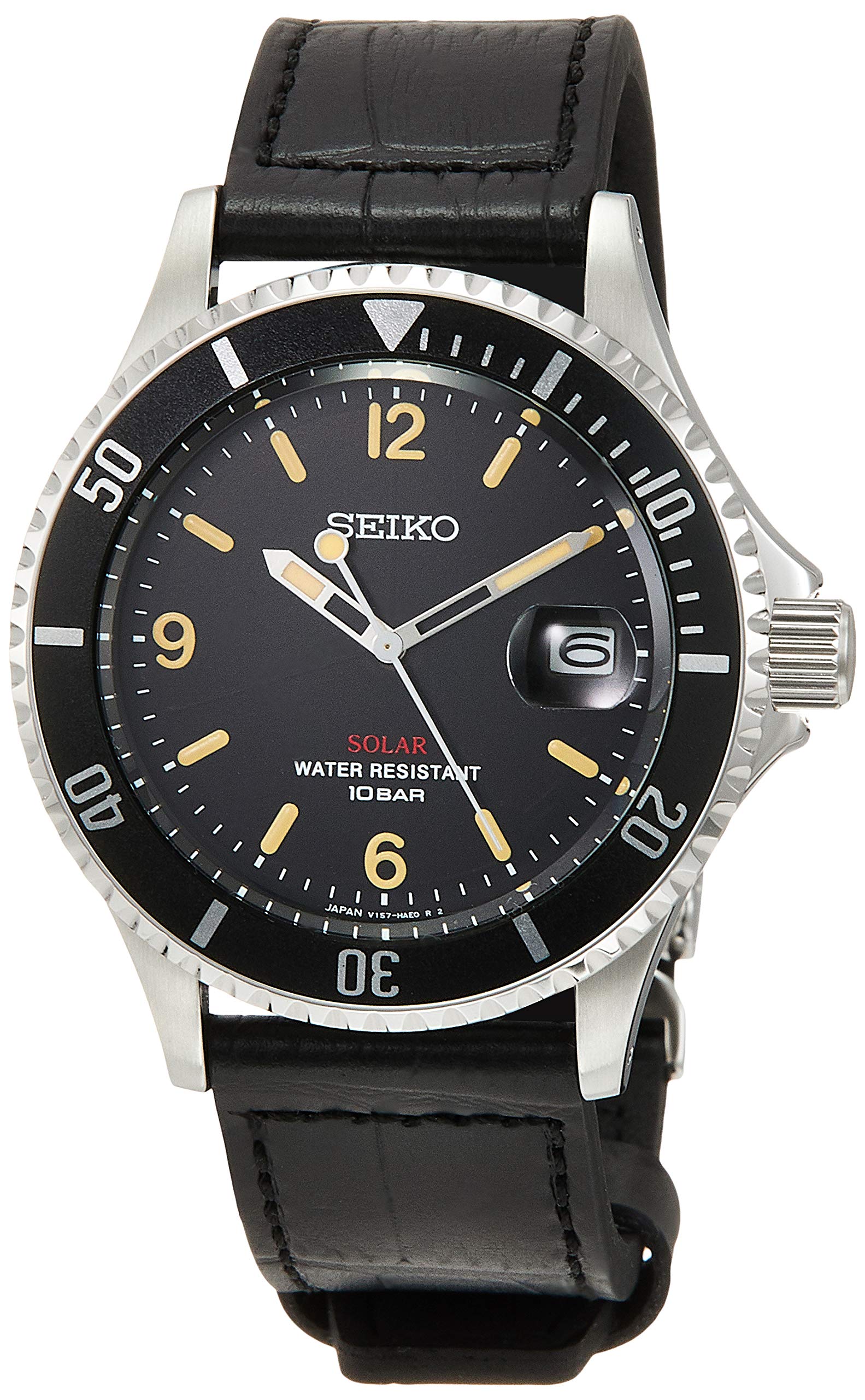 SEIKO SZEV013 Men's Watch Black Analog Round Face Vintage design solar limited