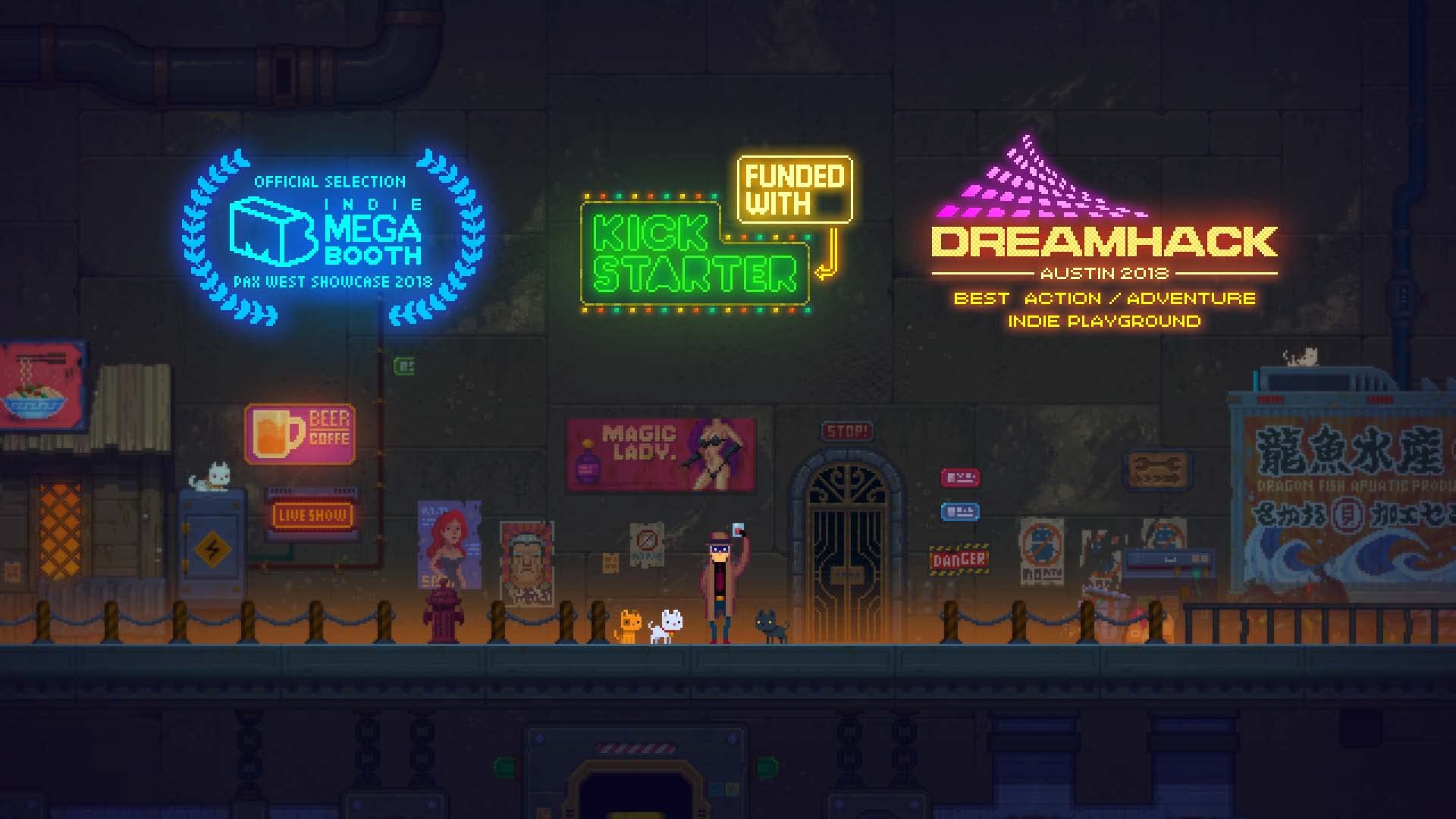 Stunningly detailed retro-style pixel art, modern lighting, and luxurious visual effects bring this unique cyberpunk world to life. The music and sound design add depth to the suspense and mystery. -
