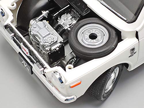 This is a 1/18 scale plastic assembly kit of the Honda N360, a best-selling kei car released in 1966 and updated in 1970 to the N III 360 model. The kit features operable left and right doors, a removable hood, and an observable air-cooled 2-cylinder engine. The front wheels are steerable. For painting, "85026 TS-26 Pure White" is recommended.