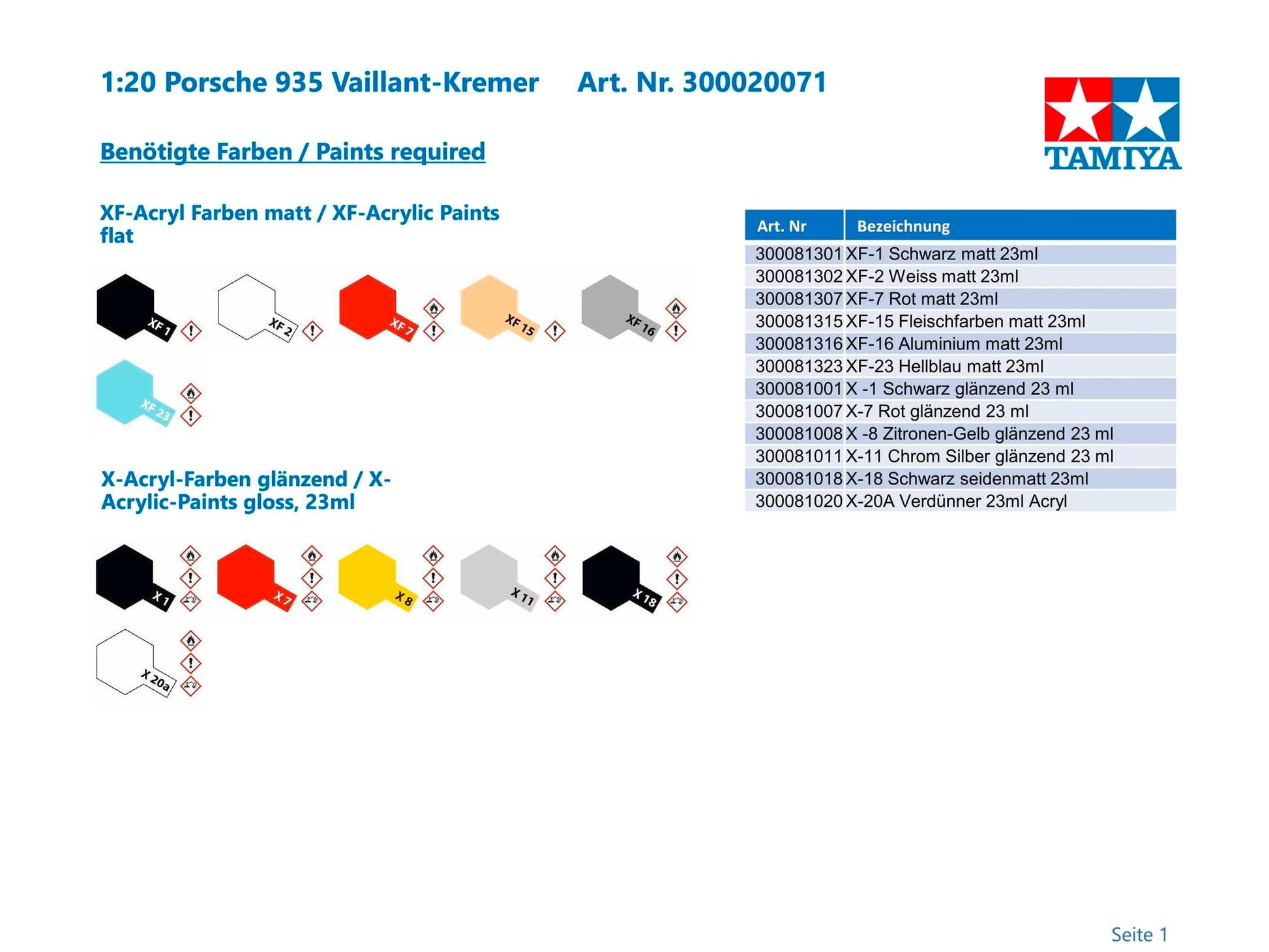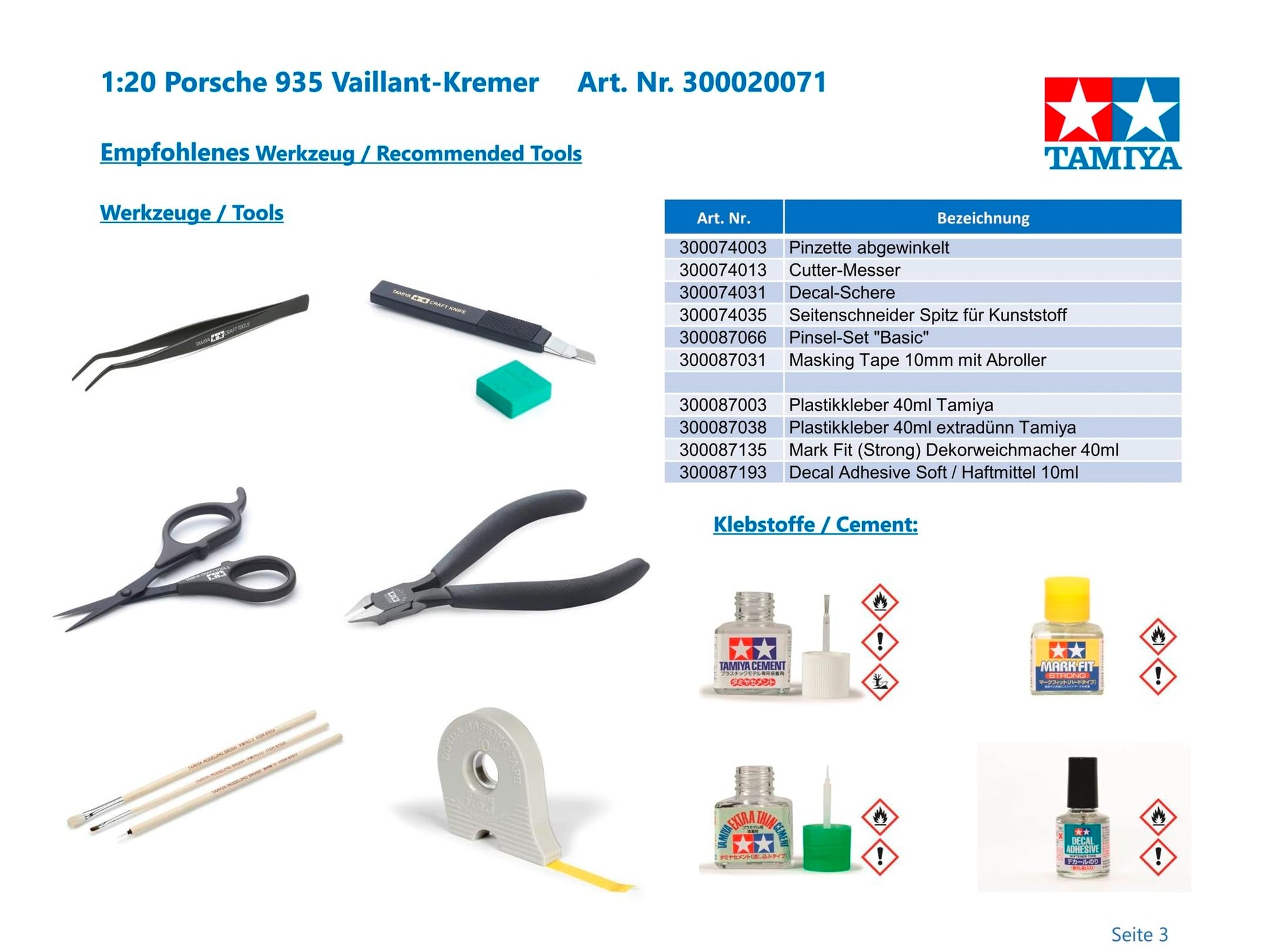 Tamiya 1/20 Grand Prix Collection Series No.71 Porsche 935 Vaillant Plastic Model 20071.