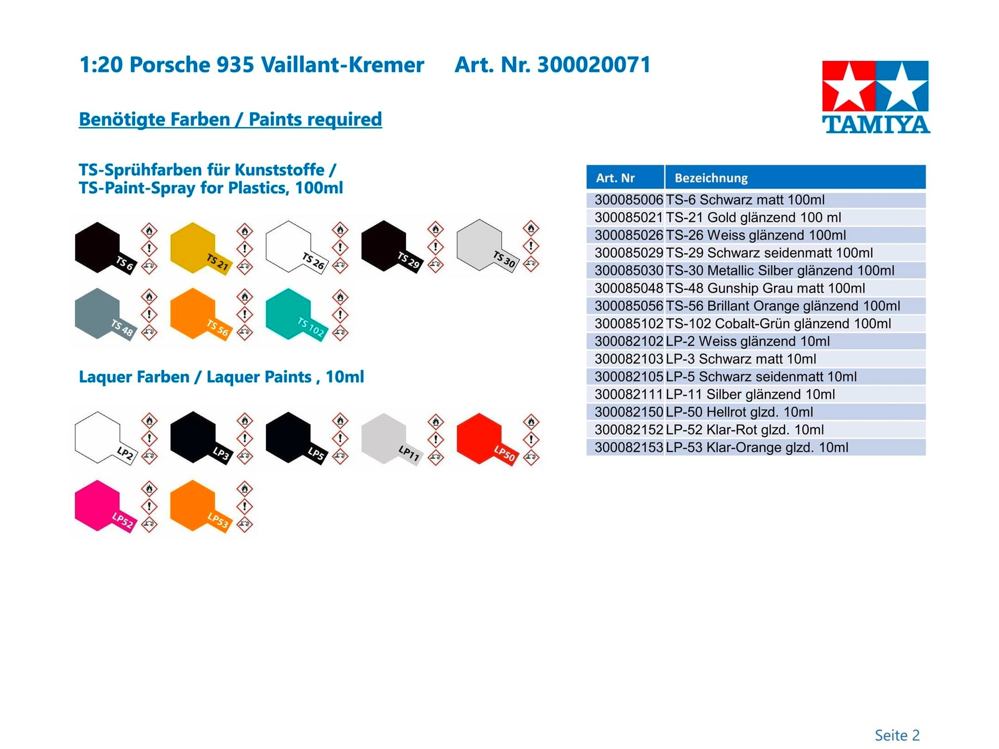 Tamiya 1/20 Grand Prix Collection Series No.71 Porsche 935 Vaillant Plastic Model 20071