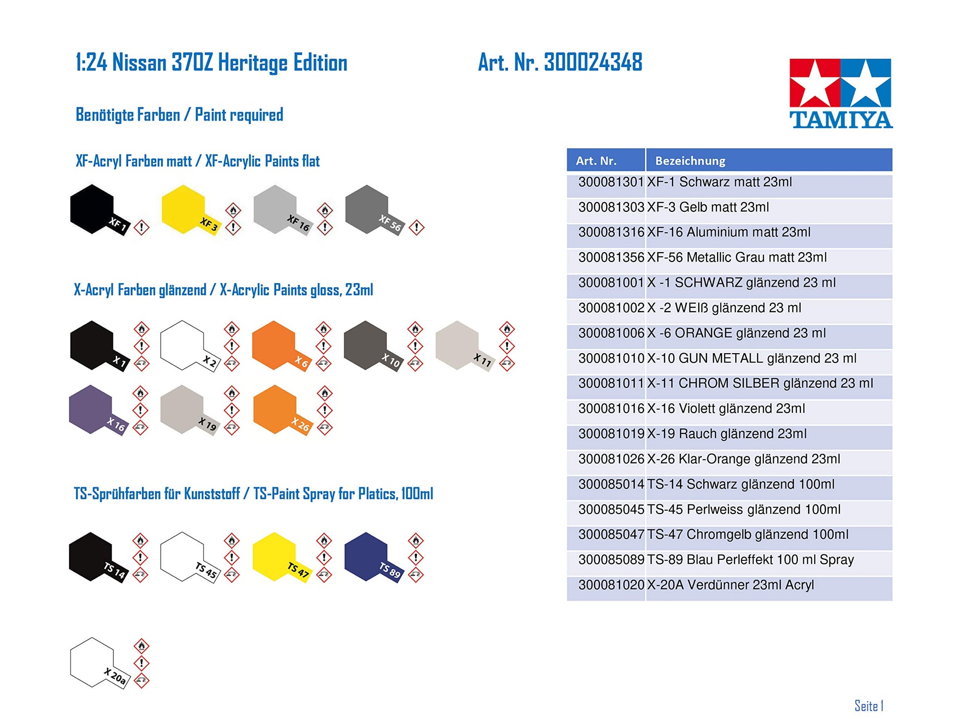 Tamiya 1/24 Sport Car Series No.348 Nissan Fairlady Z Heritage Edition Model Kit