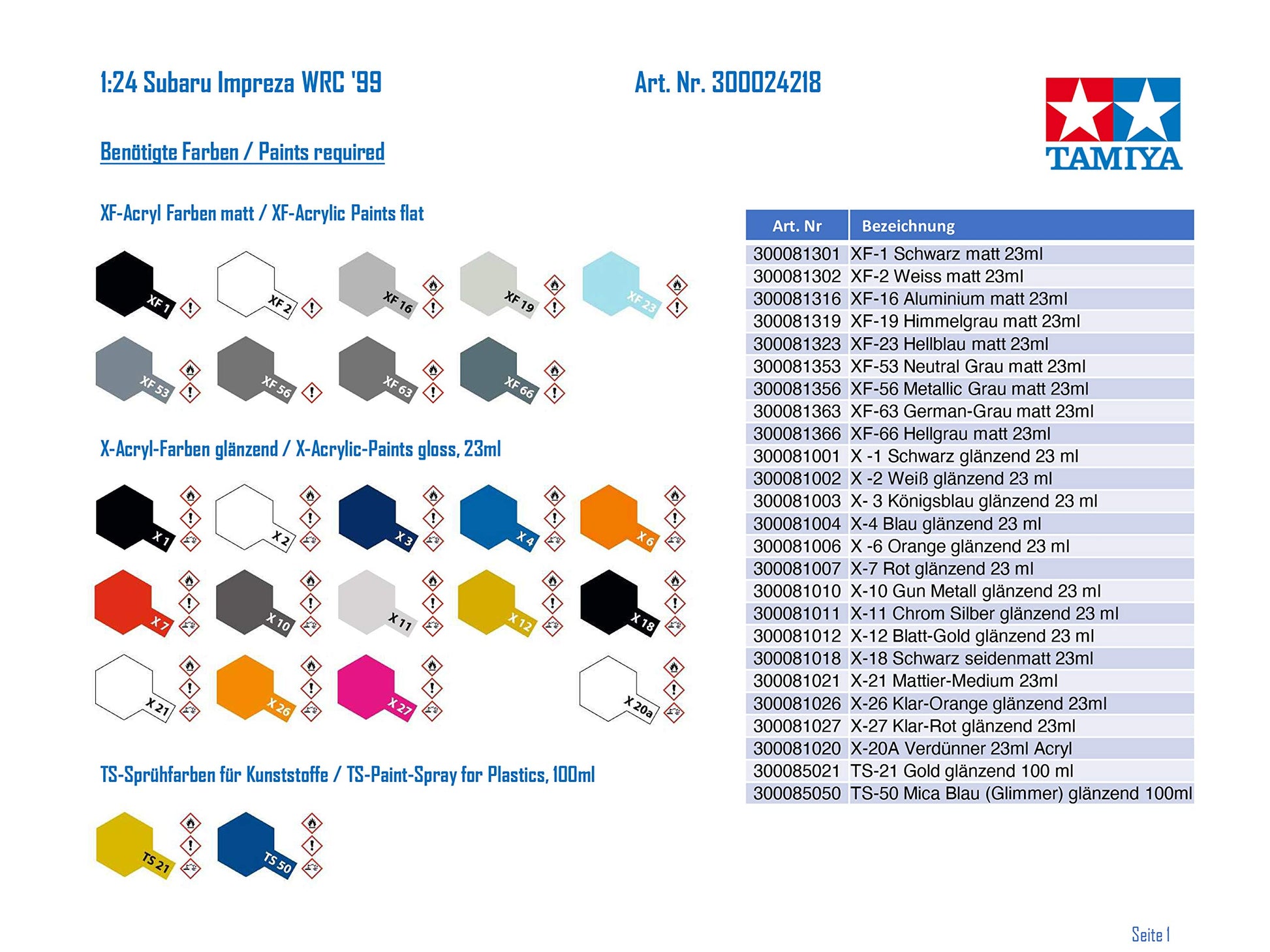 Tamiya 1/24 Sports Car Series No.218 Subaru Impreza WRC 1999 Plastic Model