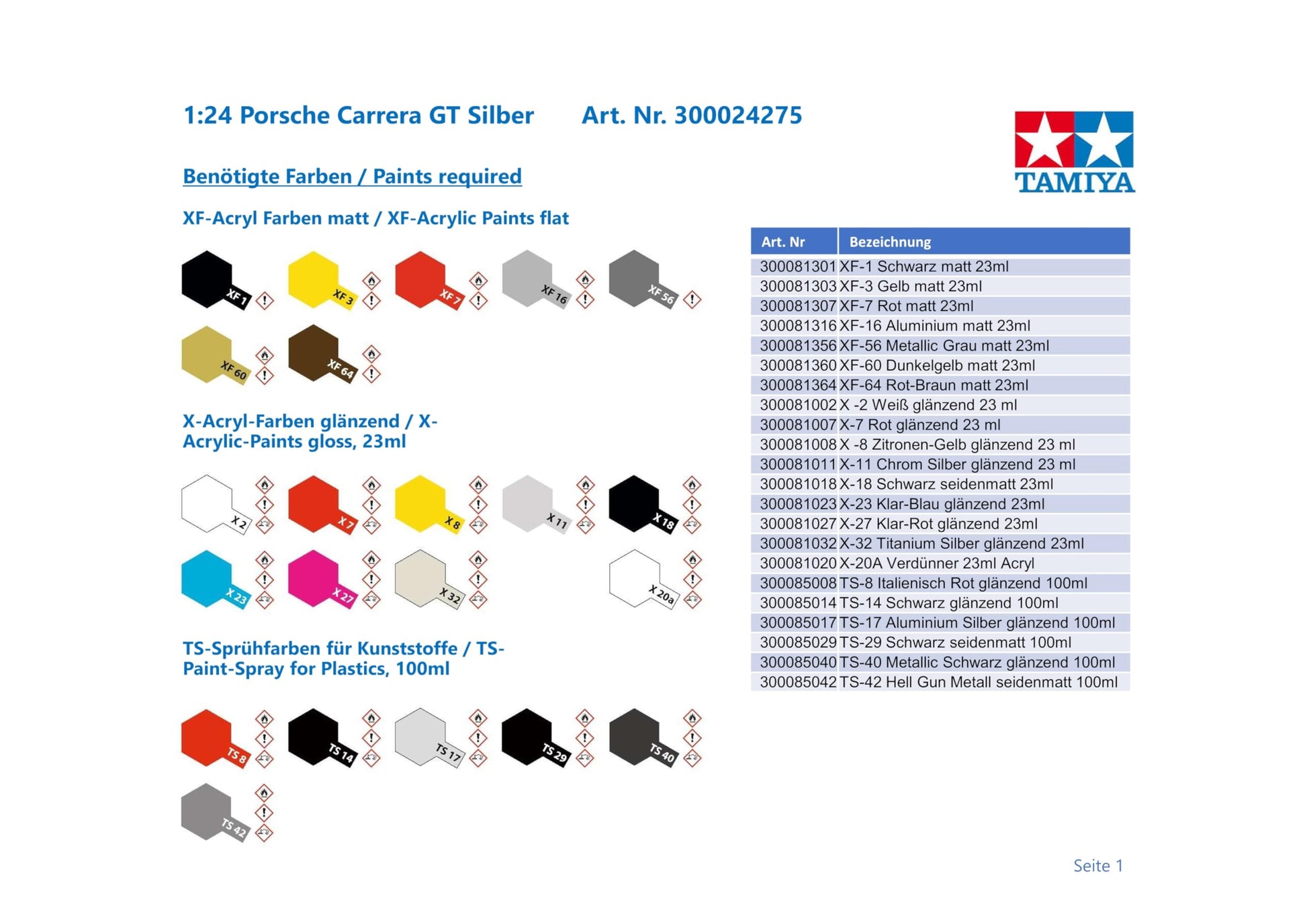 Tamiya 1/24 Sports Car Series No.275 Porsche Carrera GT Model Kit