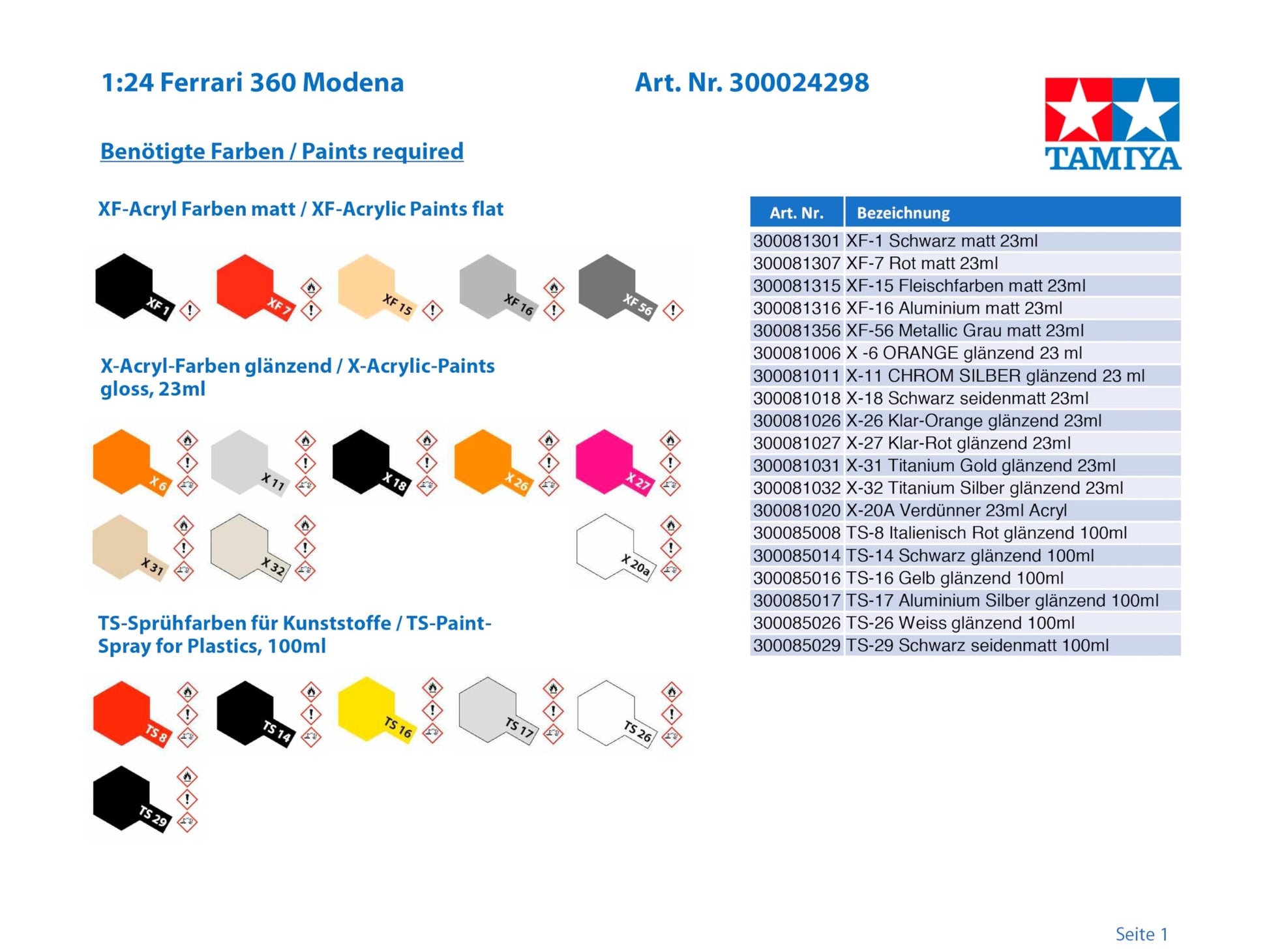 Tamiya 1/24 Sports Car Series No. 298 Ferrari 360 Modena Plastic Model 24298