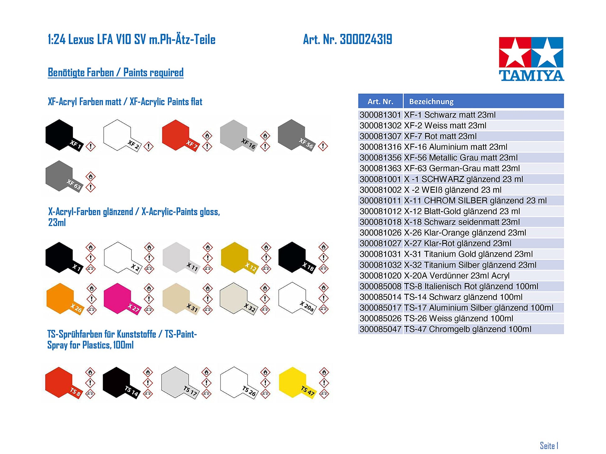 Tamiya 1/24 Sports Car Series No.319 LEXUS LFA Plastic Model 24319