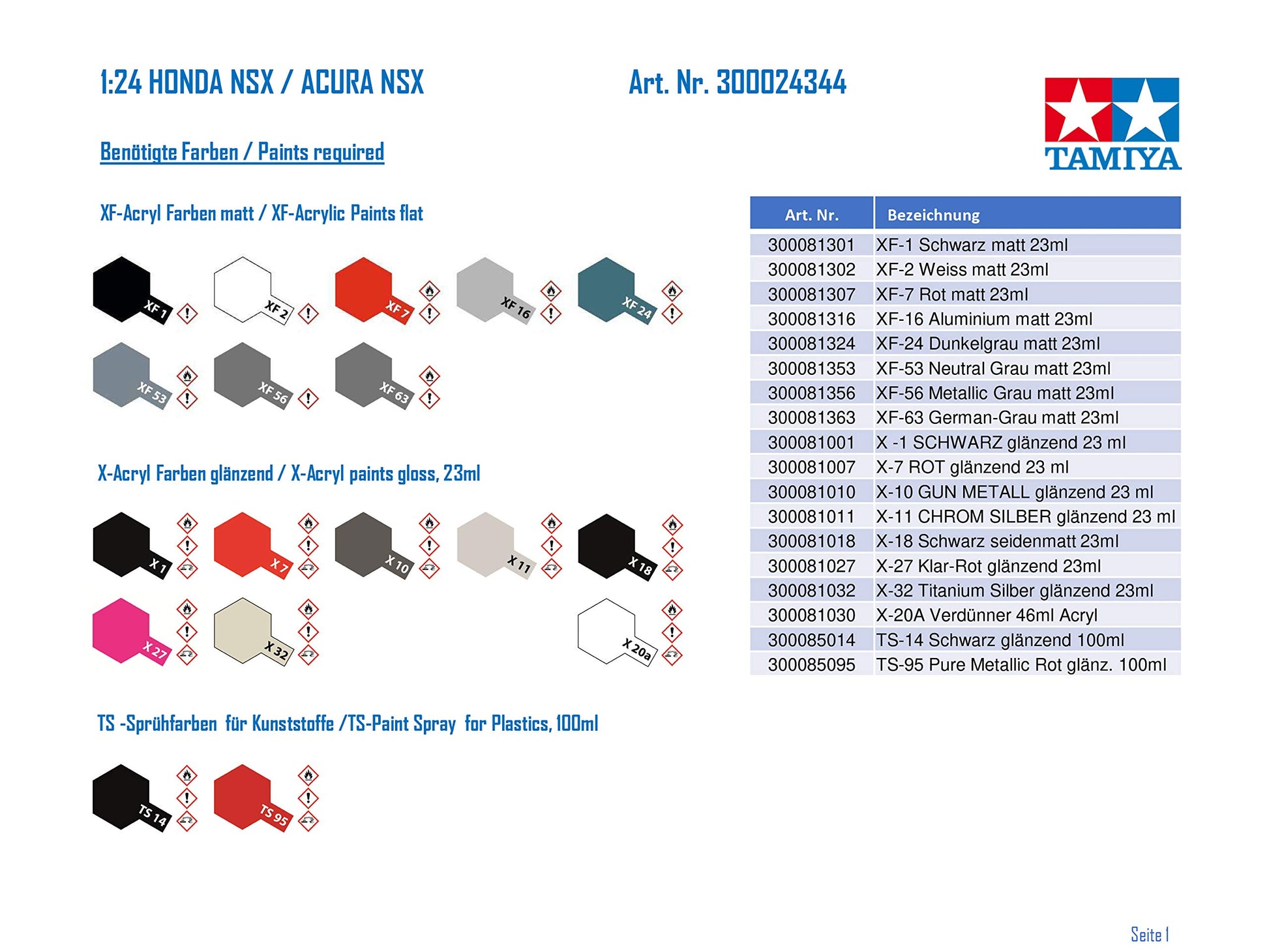 Tamiya 1/24 Sports Car Series No.344 Honda NSX Plastic Model 24344