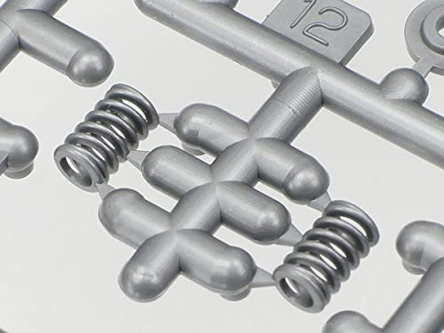 - Front and rear suspension springs are detailed using plastic parts from a sliding mold
