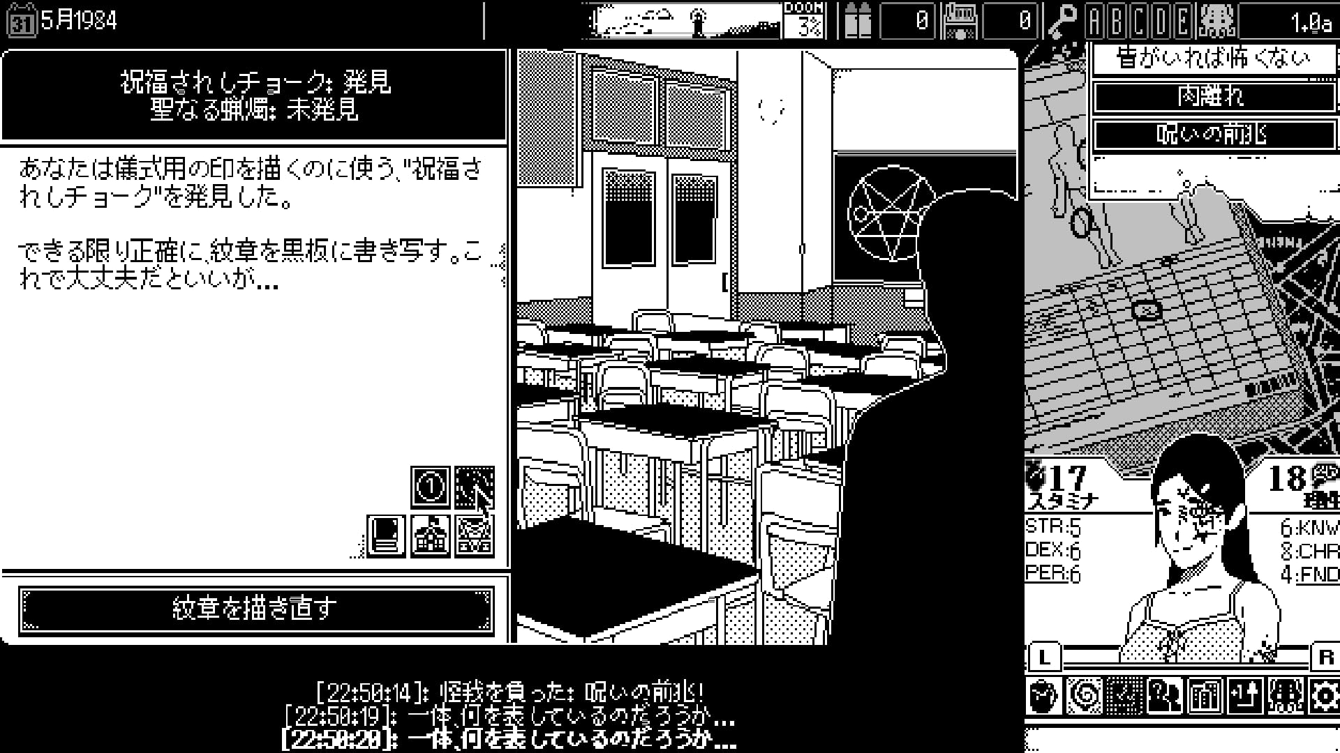 Battles with entities begin suddenly, featuring turn-based mechanics, with nightmarish encounters that change with each playthrough, and ruthless choices that weave together this hellish cosmic horror roguelite RPG for you to survive.