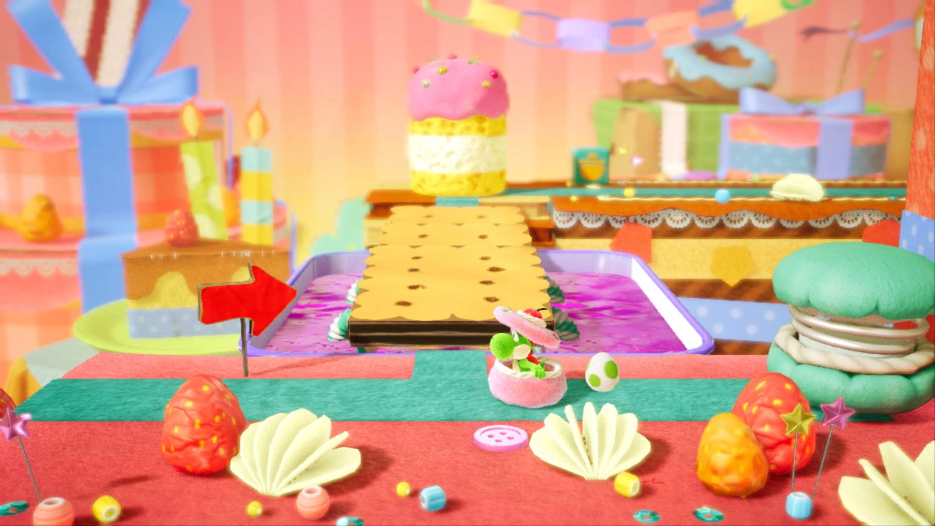 Venture through a world of crafts with Yoshi! The adventure takes place in a world made from craft materials like empty boxes and paper cups. In this crafted world with depth, Yoshi will use his egg-throwing skills to defeat enemies, collect hidden items, and activate crafting mechanisms, exploring every corner as he aims for the goal. Additionally, the game includes "Reverse Courses," where you explore the backside of the courses and advance from the goal point, offering new discoveries compared to the front side. By sharing Joy-Con controllers, you can enjoy cooperative adventures with two Yoshi characters.